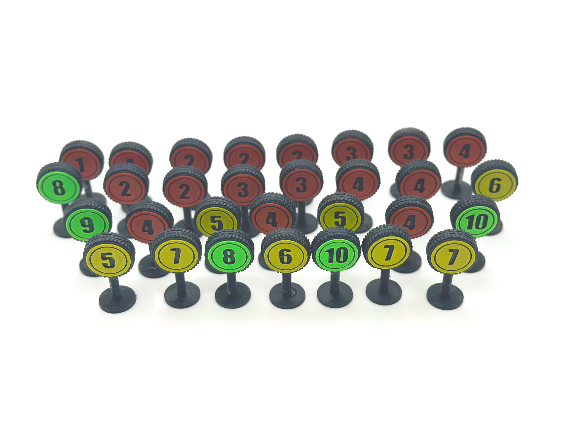 (x2) 1, (x4) 2, (x5) 3, (x6) 4, (x3) 5, (x2) 6, (x3) 7, (x2) 8, (x1) 9, (x1) 10, (x1) 11. - Conjunto de túneles: 10 puertas de túnel (entrada + interior) para la expansión Tunnel Vision .
