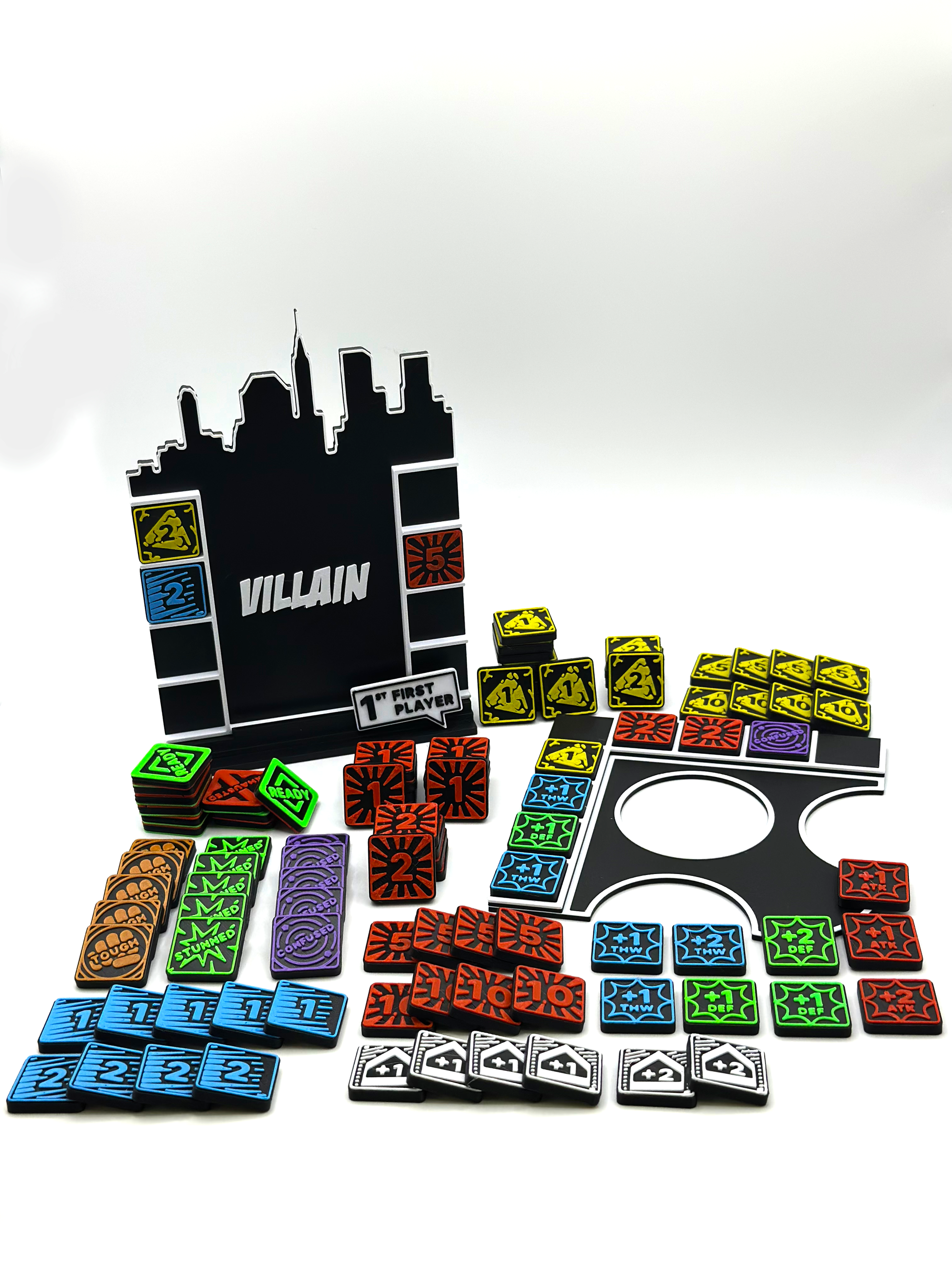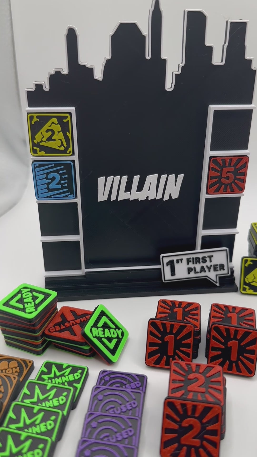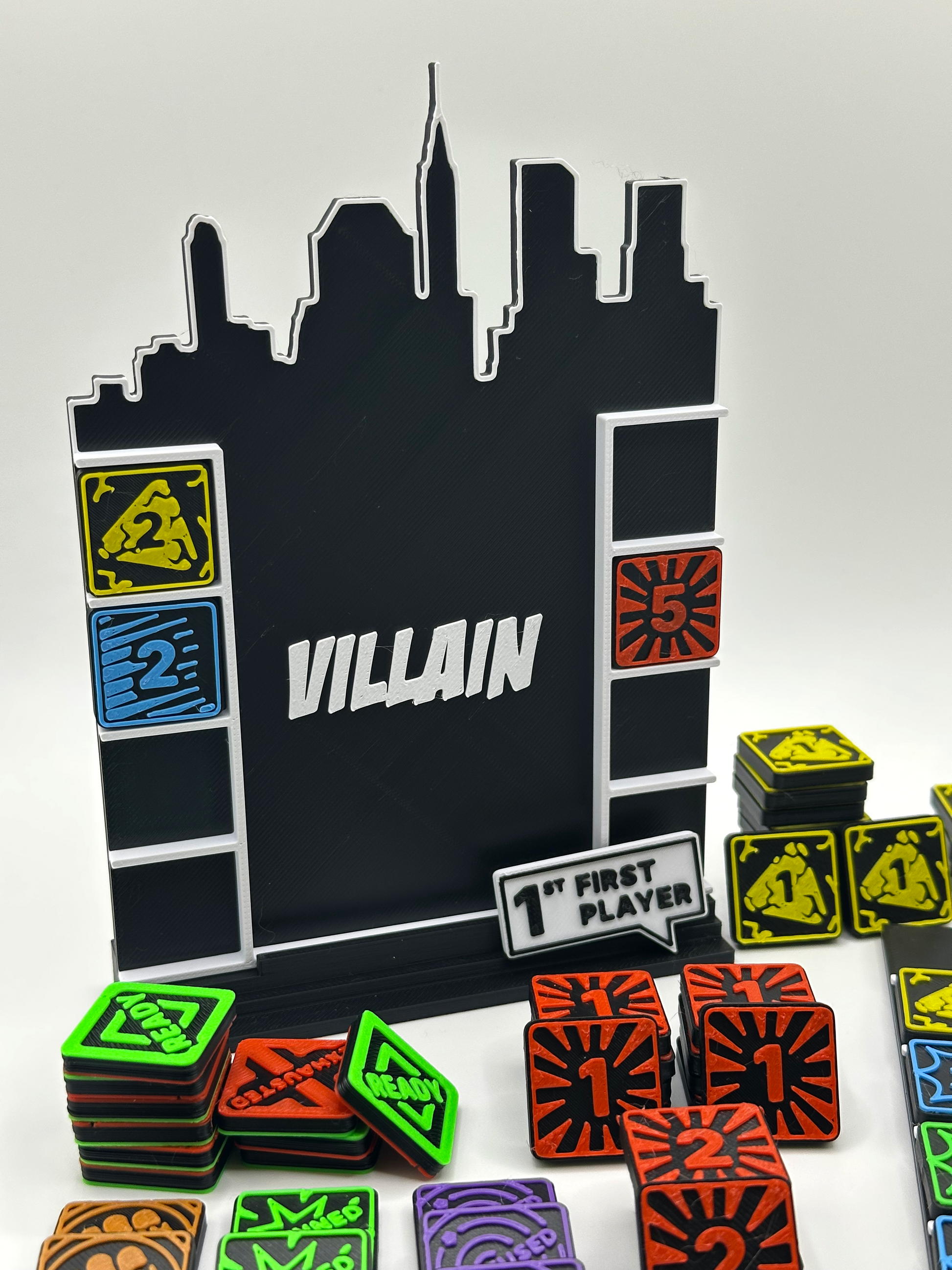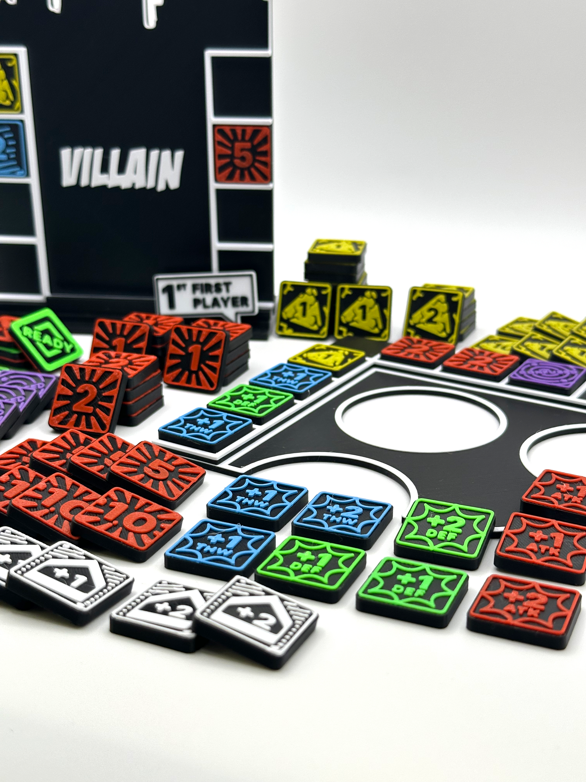 Con colores vivos estilo cómic, las fichas magnéticas permanecen perfectamente en su lugar en los tableros de Héroe y Villano incluidos, lo que hace que tu área de juego sea organizada e inmersiva.