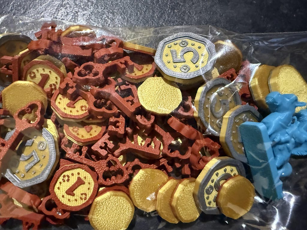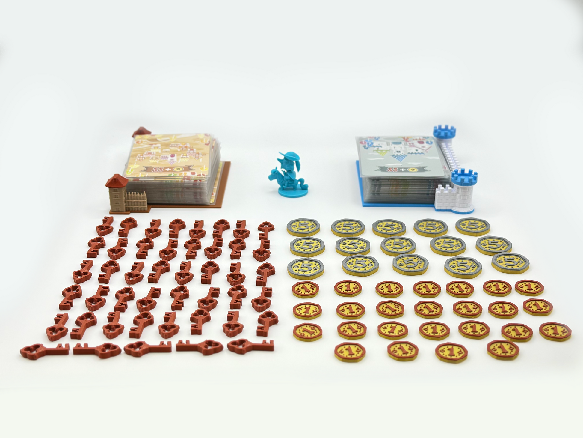 Small Set: Stands + 30 keys 🔑 + 5 gold coins (value 5) 🟡 + 15 red coins (value 1) 🔴 + 🎁 Messenger mini figure (gift).