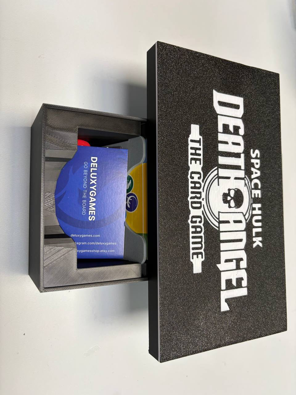 This box is designed for the Telegram group. All the 247 premium sleeved cards fits perfectly in the box, the rulebook and the faction and support tokens.